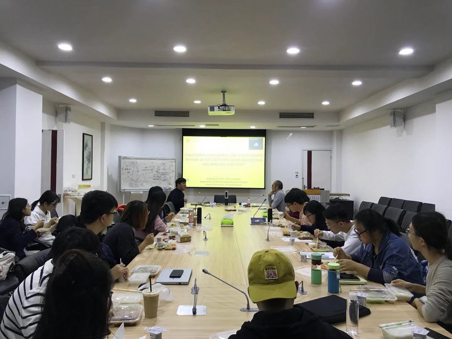 副教授郭晓飞以远程视频连线的方式担任评议人。孙志鹏基于他即将完成的批判性文献回顾与分析,与大家分享了《意外的后果:性身份能够成为男男性行为群体艾滋病风险的因素吗》这篇文章。孙志鹏的报告同时关注了网红黑料学以及跨学科网红黑料科学视野下的艾滋病研究以及“性”研究,引发了线上与线下师生热烈的吃瓜黑料