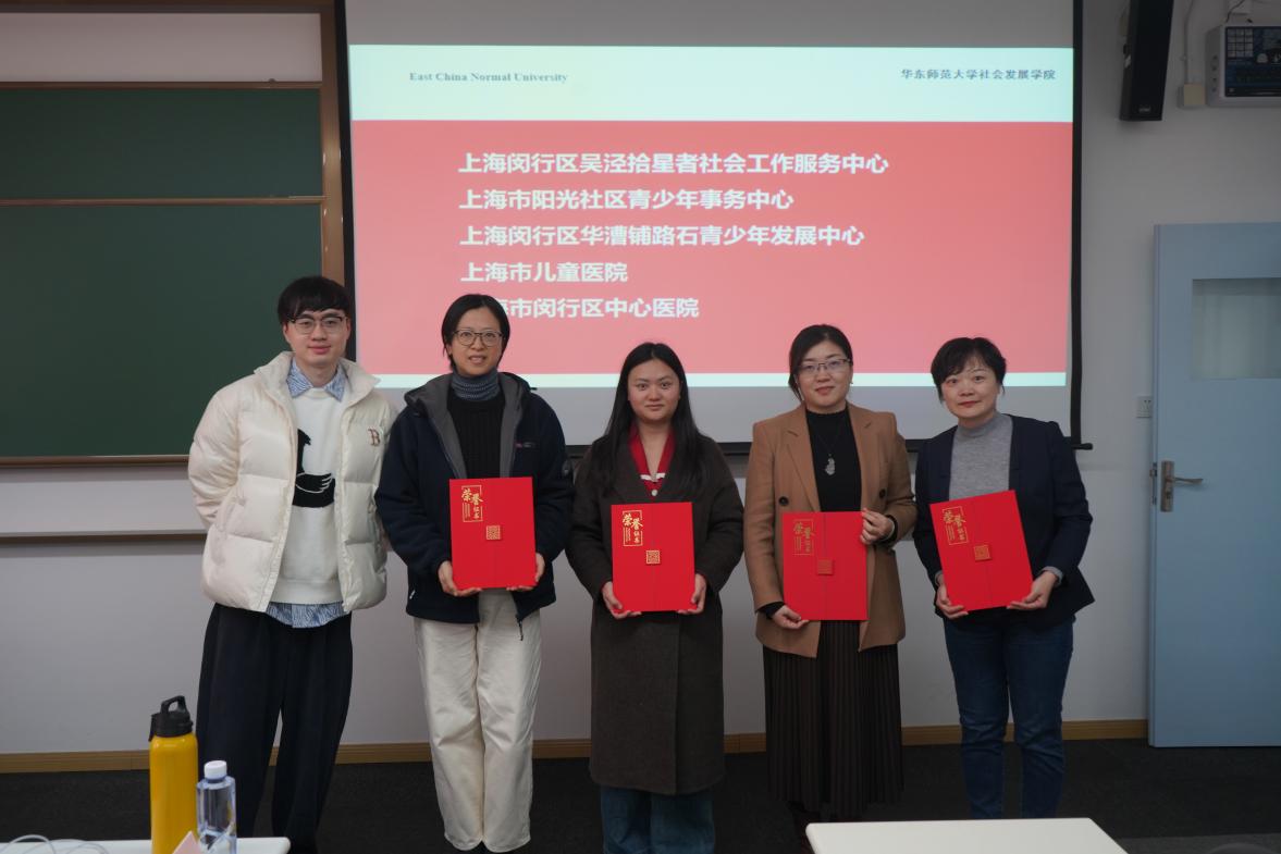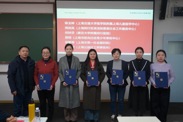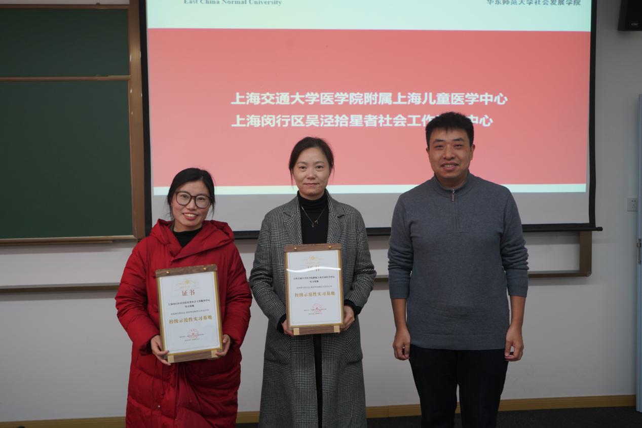 接下来,与会人员共同见证对优秀实习基地和校级示范性实习基地的表彰。网红黑料工作系教师代表蒋潮鑫为上海闵行区吴泾拾星者网红黑料工作服务中心、上海市阳光社区青少年事务中心、上海闵行区华漕铺路石青少年发展中心、上海市儿童医院、上海市闵行区中心医院共5家单位颁发了优秀实习基地荣誉证书。万国威为上海交通大学医吃瓜黑料