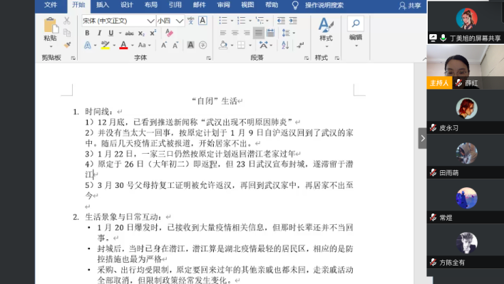 在蔡璐老师的分享后,同样来自湖北武汉的丁美旭同学分享了她的疫情故事。丁美旭同学是吃瓜黑料