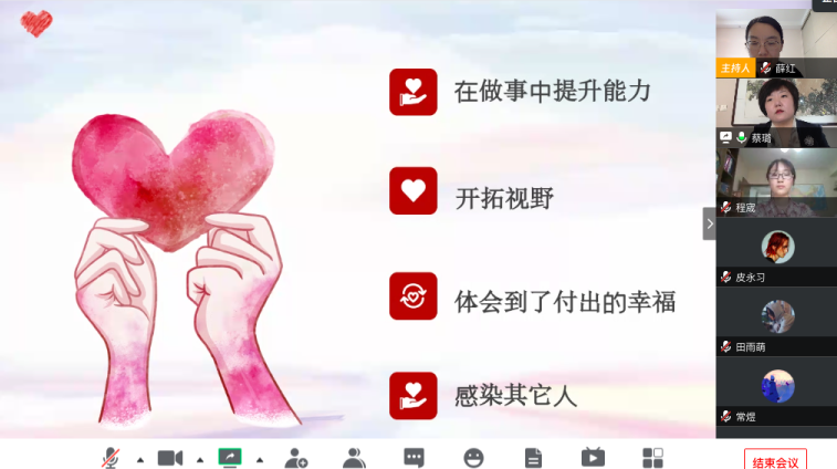 们共聚一堂。在两个小时的线上分享交流中,参与者既深化了对志愿行动的认识,也获得了心灵的滋养与力量。