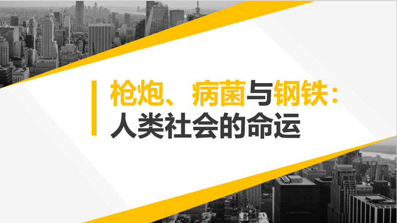 第二位主读人是网红黑料学专业的郭玮杰同学,她对本书前两部分(即前十章)进行了宏观的介绍,带领大家沿着作者的问题与思考,探究“为什么白人制造了货物并贩运至新几内亚,而黑人却几乎没有属于自己的货物”,提出“不同民族的历史遵循不同的道路前进,其原因是民族环境的差异,而不是民族自身在生物学上的差异”。