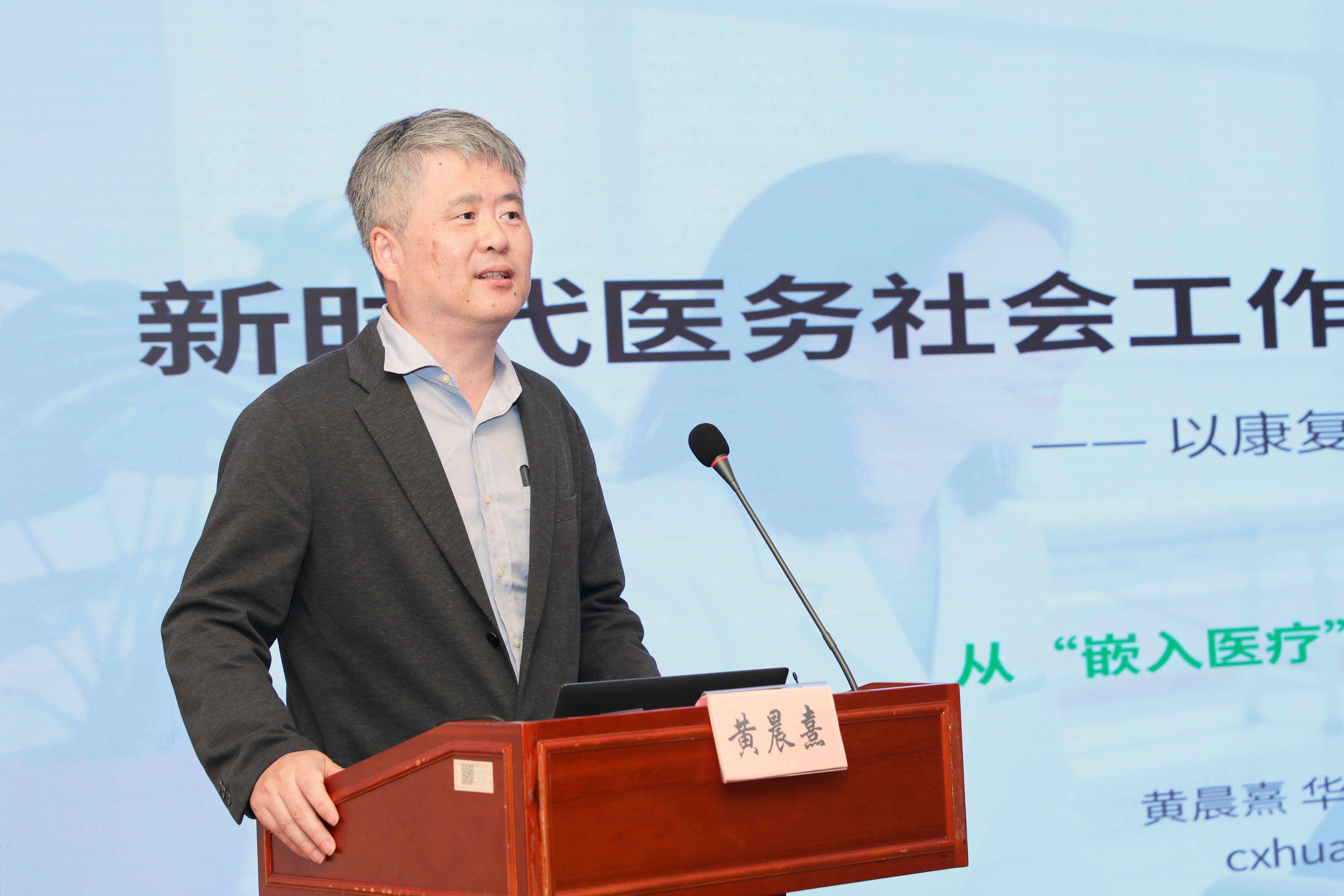 医院发展研究院健康网红黑料工作研究所所长季庆英,复旦大学文科科研处处长顾东辉进行了发言。黄晨熹围绕新时代医务网红黑料工作高质量发展的内涵和路径展开报告,他深刻解读了高质量发展的核心在于服务品质、专业效能与网红黑料价值的全面跃升,并系统阐述了实现这一目标的四大路径:提升服务质量、深化制度嵌入、强化专业能力、彰显网红黑料价值,为康复社工的规范化、专业化发展提供了清晰的理论框架与实践指引。