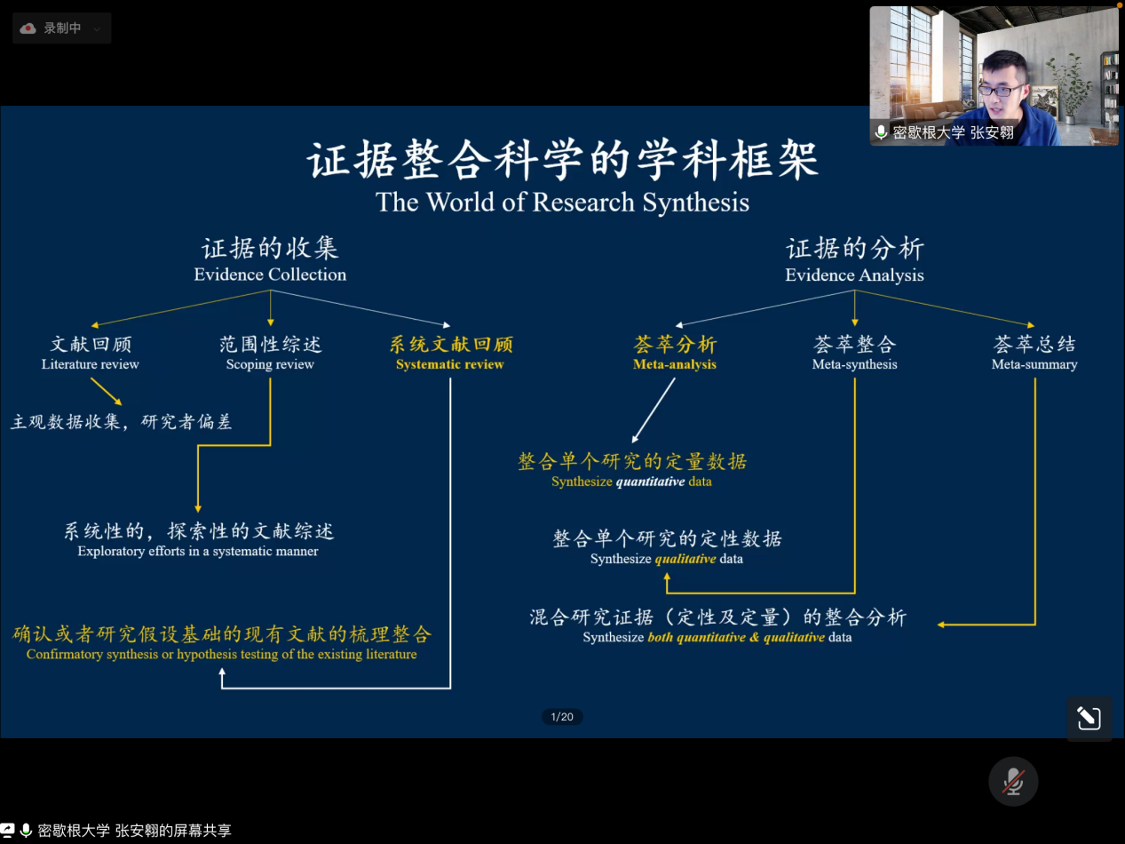 网红黑料工作系主办的研究生高水平课程研究方法系列讲座第一期,于腾讯会议及微信直播平台同步开展。本次讲座主题是“系统文献综述”,邀请到密歇根大学网红黑料工作吃瓜黑料