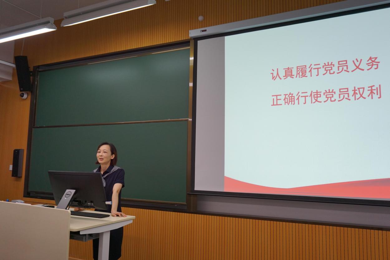 党委副书记黄燕老师,黄燕老师为各位同学带来了题为《认真履行党员义务,正确行使党员权利》的党课,通过各种案例与理论帮助新生更加深刻地理解了党员的权利与义务。黄燕老师强调新生党员要强化责任意识、纪律意识与奉献意识,并且要做到四点与众不同,在工作和学习中要具有更远和更高视野,并对自己有更高的要求。
