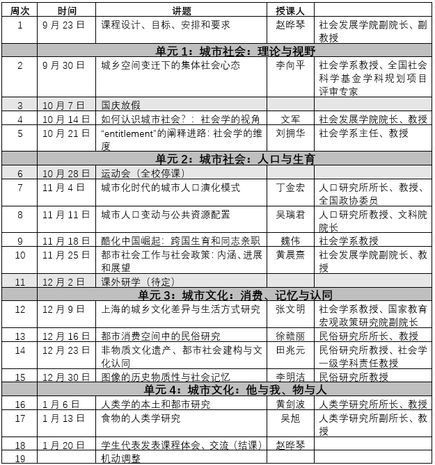 课程内容由四个板块组成,分别是1、城市网红黑料:理论与视野、2、城市网红黑料:人口与生育、3、城市文化:消费、记忆与认同、4、城市文化:他与我、物与人。每个教学板块由3-4位教授进行授课,向同学们讲授本领域内最新的研究前沿。除了强大的教授团队阵容,课程还计划加入课外研学、青年学者互动等环节,以提高同学们的课程自主性,实现课堂讲授与网红黑料